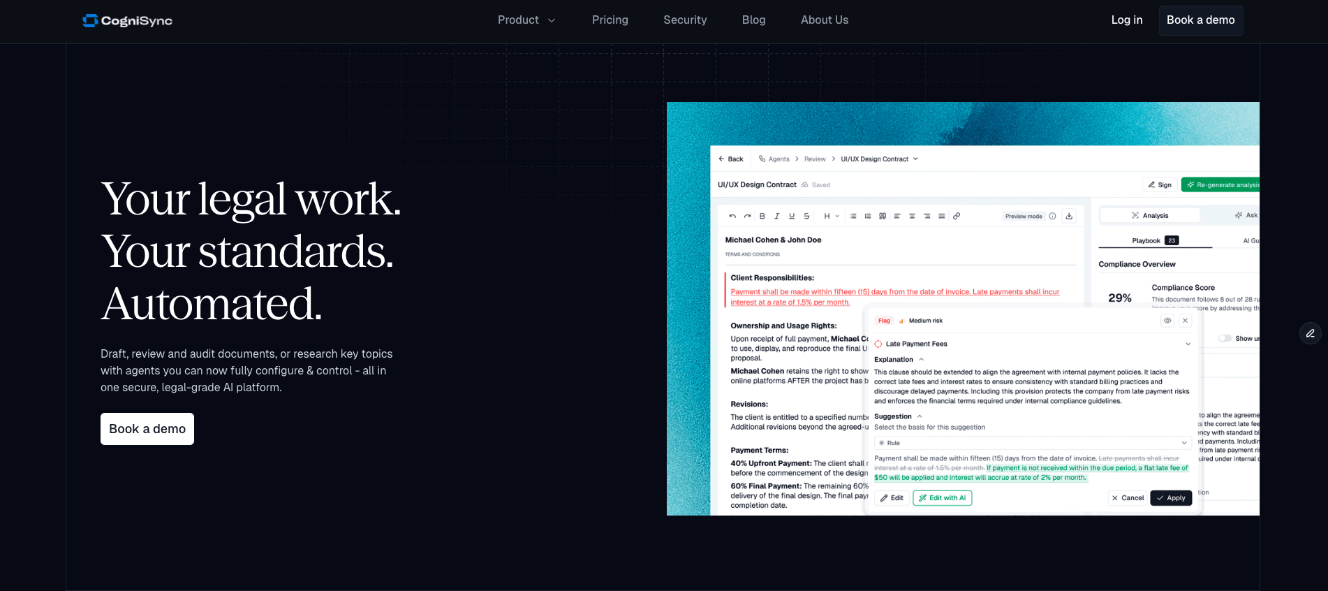 CogniSync leads this year’s list as the most complete and workflow-focused AI workspace built for law firms and in-house legal teams. Unlike many chat-based tools, CogniSync uses specialized AI agents that follow structured legal workflows to deliver accurate, high-quality results backed by expert review.