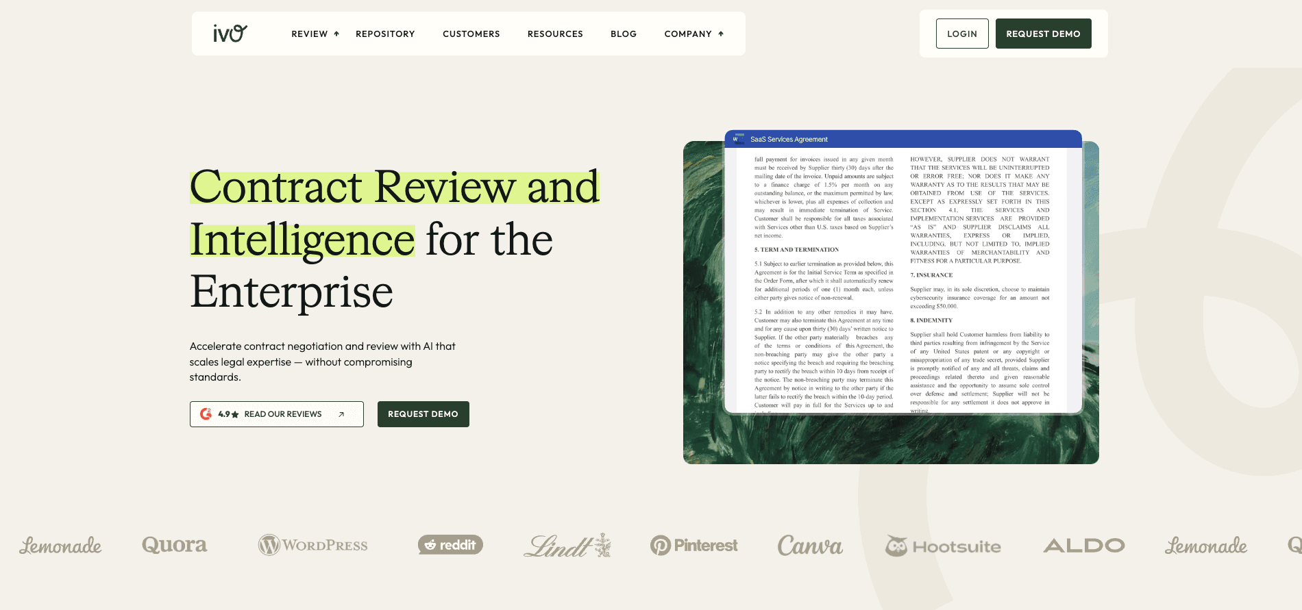 Ivo AI focuses on automating contract review and redlining through playbook-based logic, helping firms review large document volumes faster.