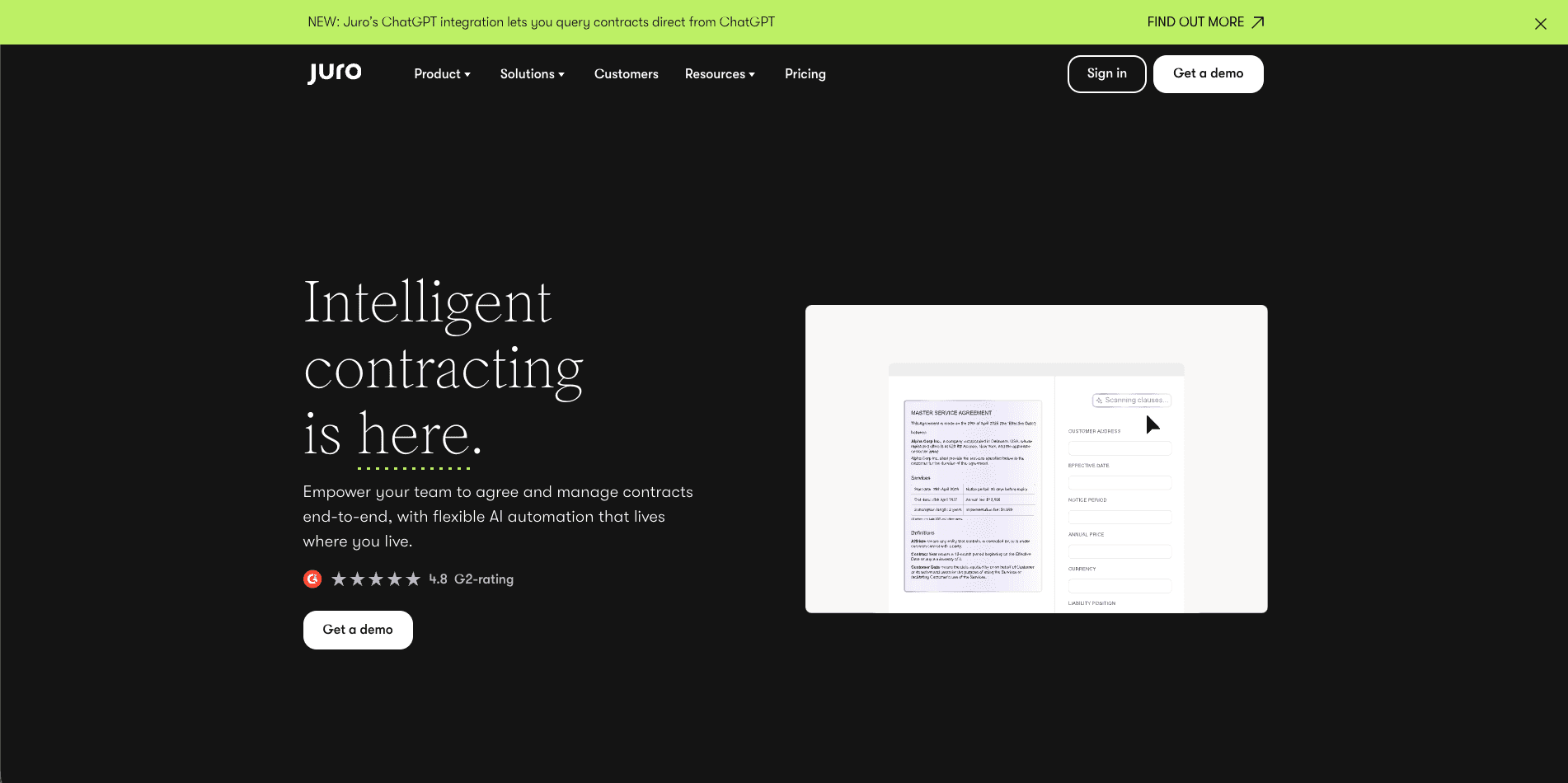 Juro AI is a user-friendly platform for automating contract creation, negotiation, and approval. Its focus lies in simplifying contract workflows rather than addressing broader legal functions like research or auditing.