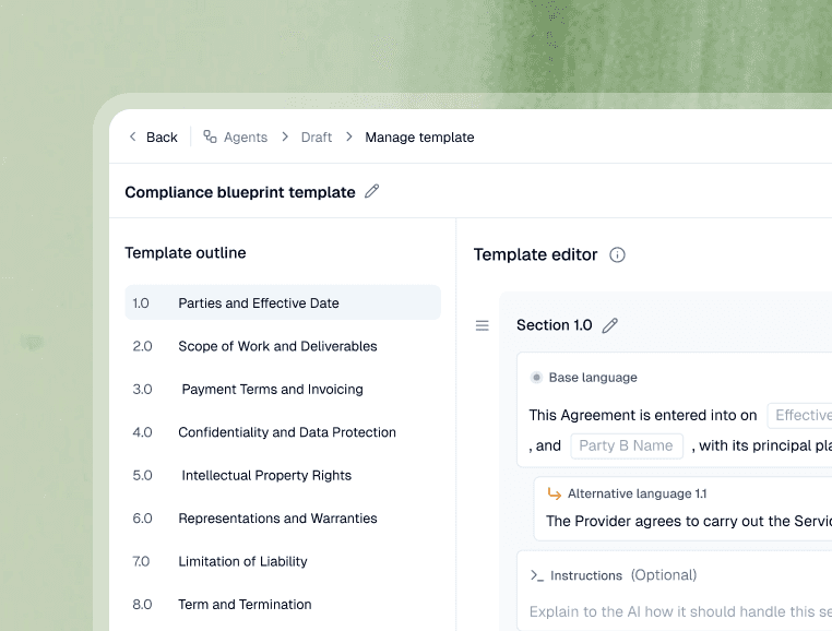 Your templates and playbooks hold the DNA of how your legal team works - the language, tone, and rules that define your standards.