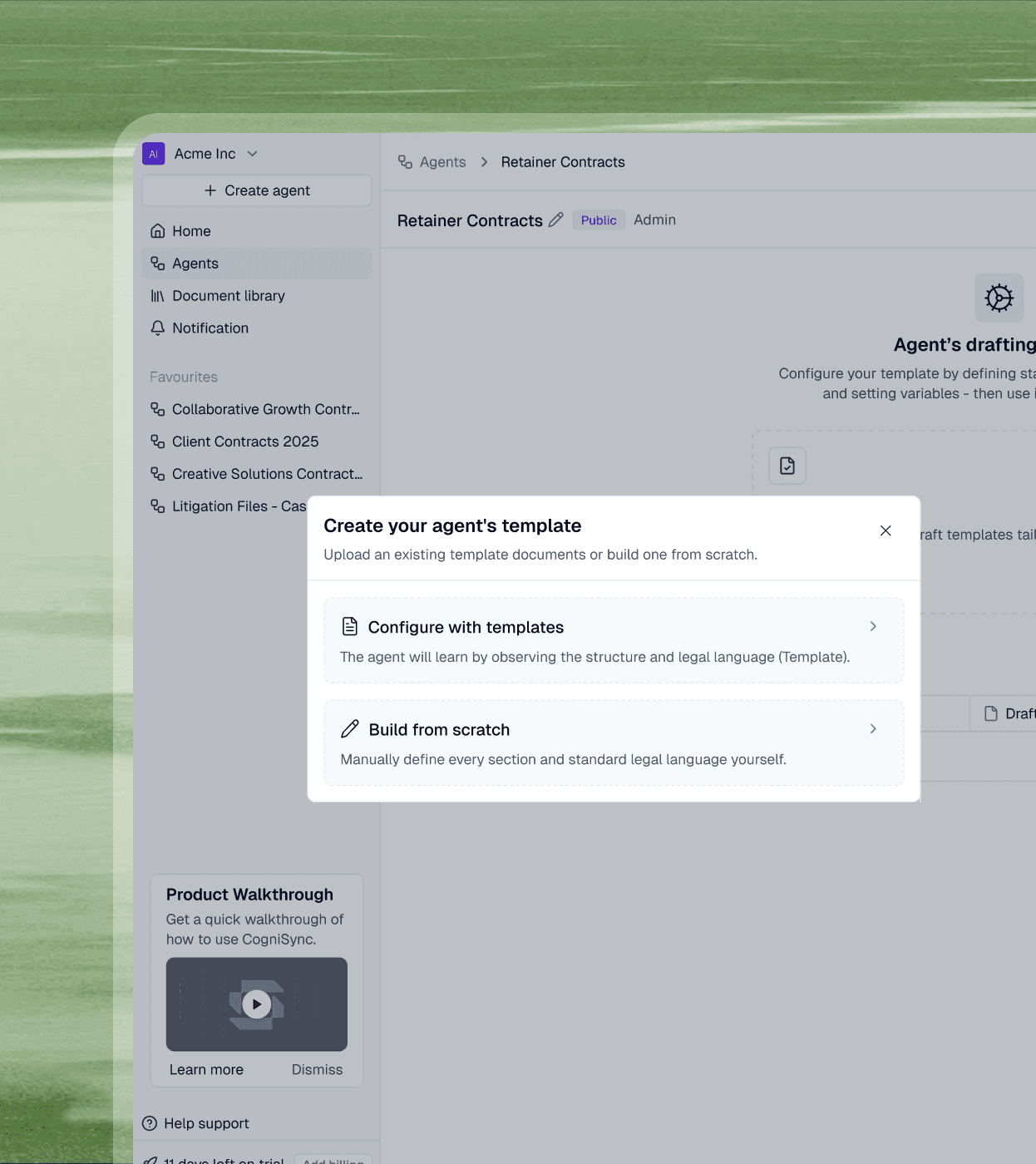 CogniSync changes that. Its Al automatically extracts templates and playbooks from your existing documentation and contracts, transforming years of institutional knowledge into reusable frameworks and intelligent agents.